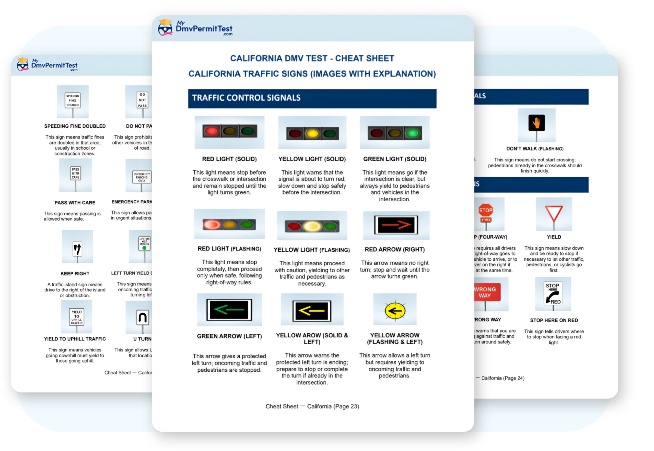- Our illustrated Traffic Signs & Signals Cheat Sheet makes it easy to recognize and remember the most commonly tested road signs.