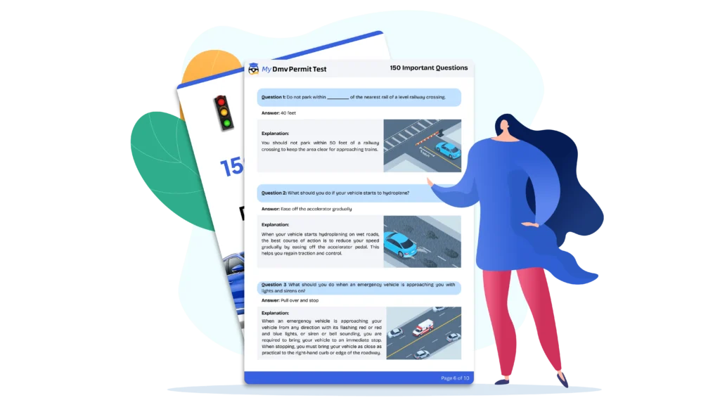 Download the California DMV cheat sheet PDF instantly with a single click. No sign-up hassle, no waiting—just fast access to 150 key questions and answers formatted for easy review. Start preparing right away without wasting time.